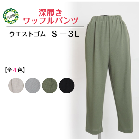 ★当社オリジナル★ 3606 ワッフル深履きパンツ ウエストゴム取替口付き 丈直し不要 S-5L