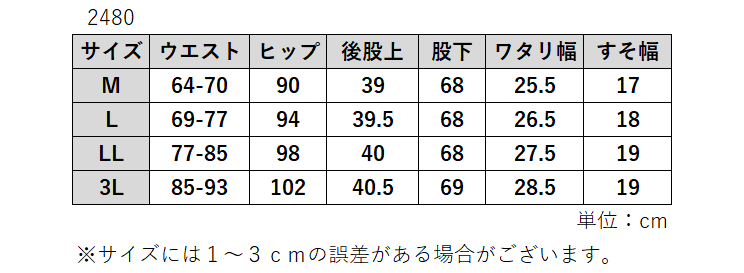 | デザイン | ウエスト板ゴム 前後ポケットあり 股下69cm |