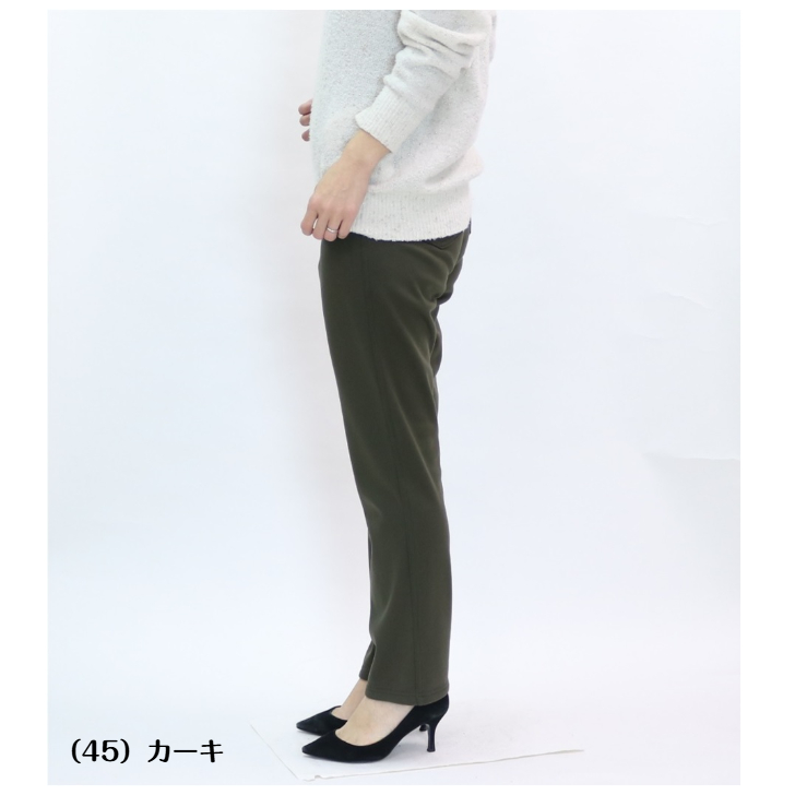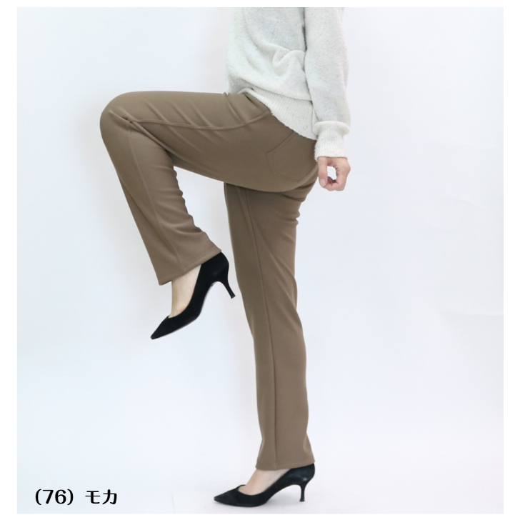 2480 柔肌ソフトポンチニット裏ベロアプルオンパンツ 股下69cm M-3L