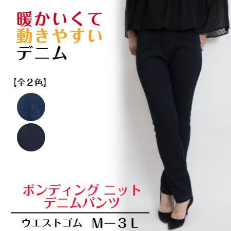 H-1187 ボンディングスリムデニム裏フリースパンツ M-3L