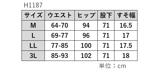 デザイン | ウエスト板ゴム 前後ポケット付き 股下71cm |