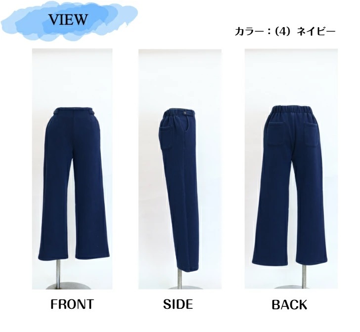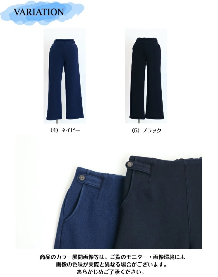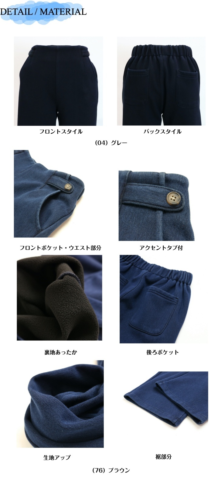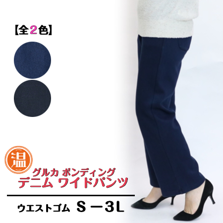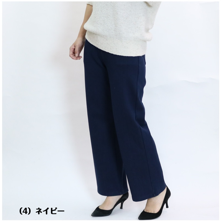 婦人服/ミセス/シニア/パンツ/ズボン/ボトム/ワイド/あったか/冬/裏起毛/裏フリース/デニム/綿混素材