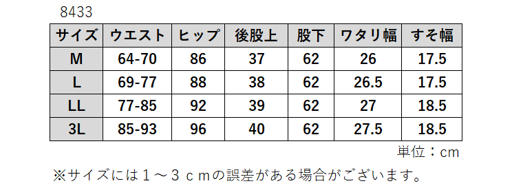 デザイン | ウエスト総ゴム 前側両サイドポケット付き 股下62cm |