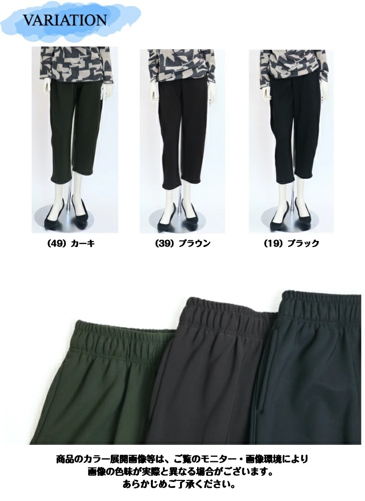 デザイン | ウエスト総ゴム 前側両サイドポケット付き 股下59cm |