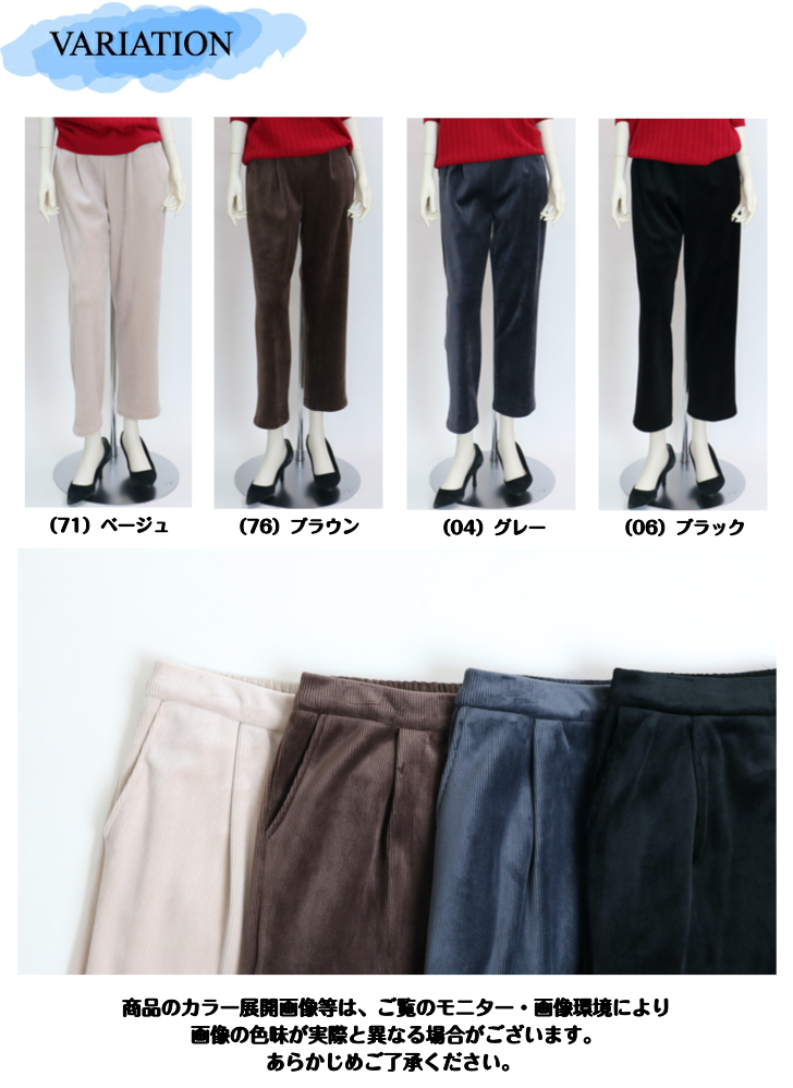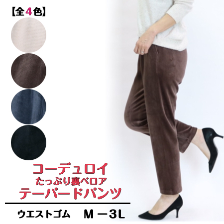 2450 上品な光沢感と柔らかな肌触りが魅力の防寒パンツ! コーデュロイボンディング裏ベロアテーパードパンツ M-3L