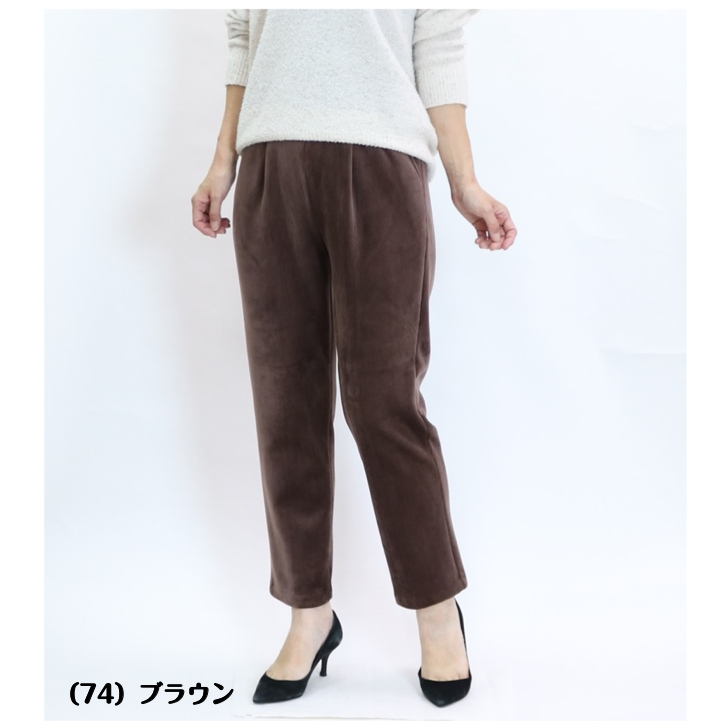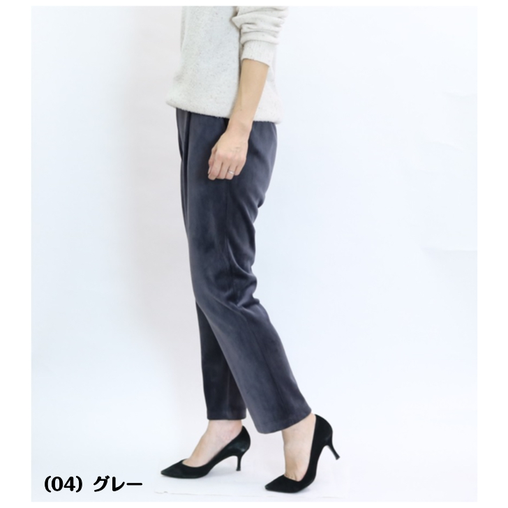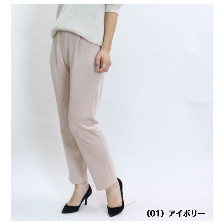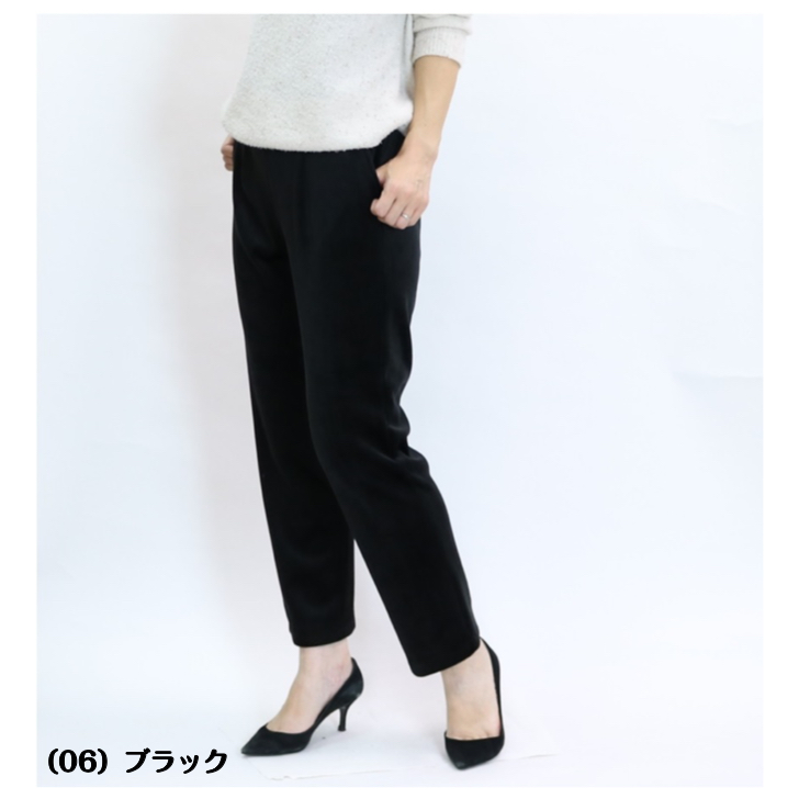 ●脚をすっきり見せるテーパードシルエットは、前タック入りでシルエットもキレイ。体型カバーしつつ、脚長効果も期待できます。