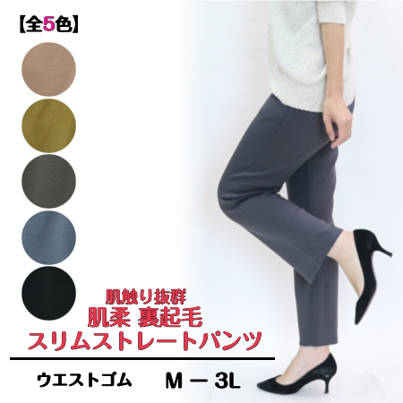 ★当社オリジナル★ 4063 カジュアルにもきれいめにも対応する万能パンツ! 肌柔裏起毛スリムストレートパンツ M-3L