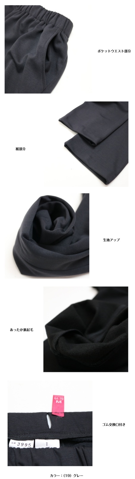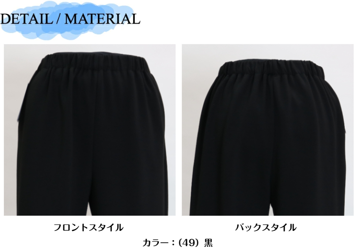 | デザイン | ウエスト総ゴム(ウエストゴム取替口付き) 前ポケット付き 股下59-60cm |