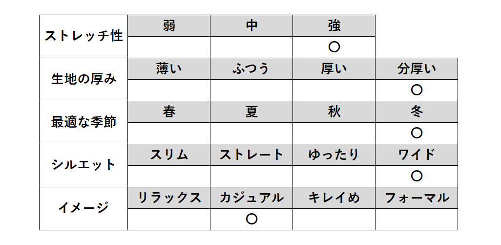| カラー | ブラック(49) チャコール(21) グレージュ(29) ベージュ(25) |