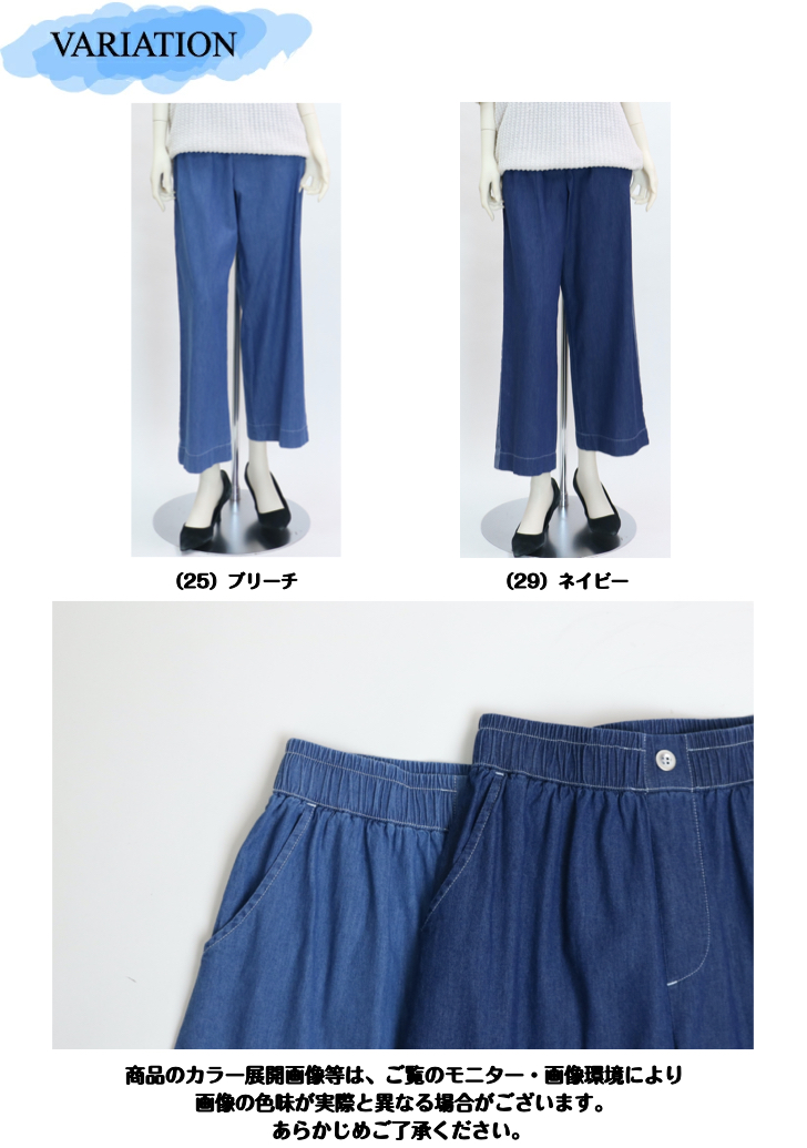 | デザイン | ウエスト総ゴム 前側ポケット付き(後ろは片側ポケット付き) 股下66-67cm |