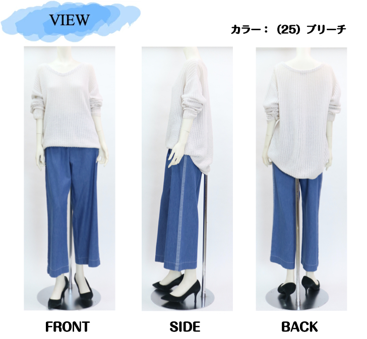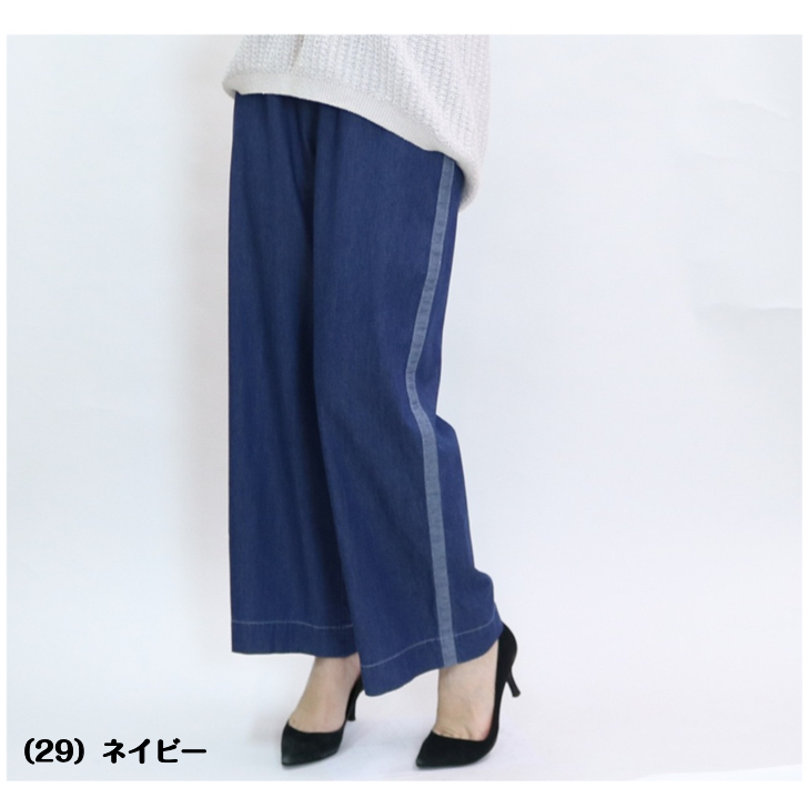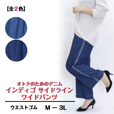 3601 サイドラインで叶う大人の美ワイドデニム! インディゴサイドラインワイドパンツ M-LL