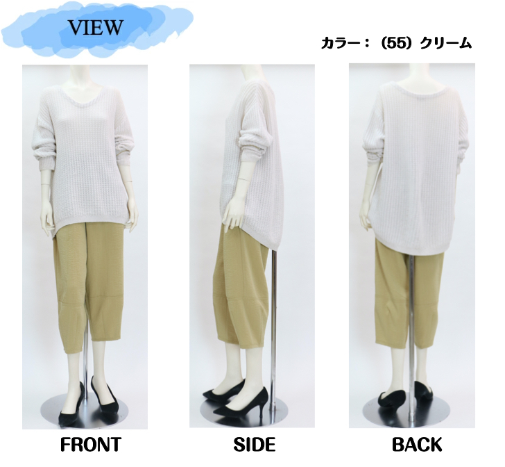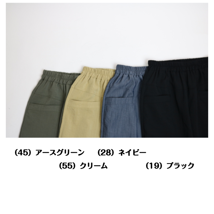 | デザイン | ウエスト総ゴム仕様 前側ポケット付き 股下56-57cm |