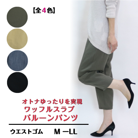 1408 涼感素材で軽やかに履ける夏バルーン! ワッフルスラブバルーンパンツ M-LL