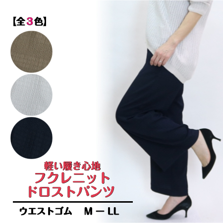 H-1354 表情ニットで大人の抜け感! フクレニットドロストパンツ M-LL