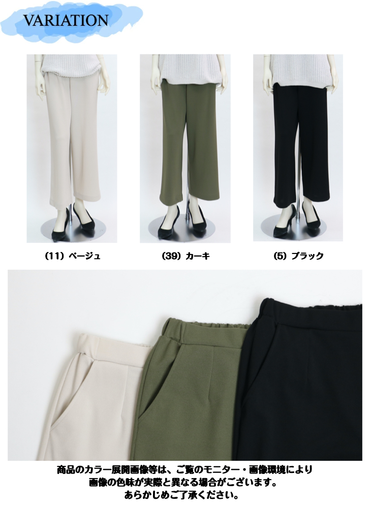 ●ウエスト総ゴム仕様で楽なのにきれい見え。締め付け感を抑えつつ、フロントはすっきり見えるため、トップスインでも安心です。
