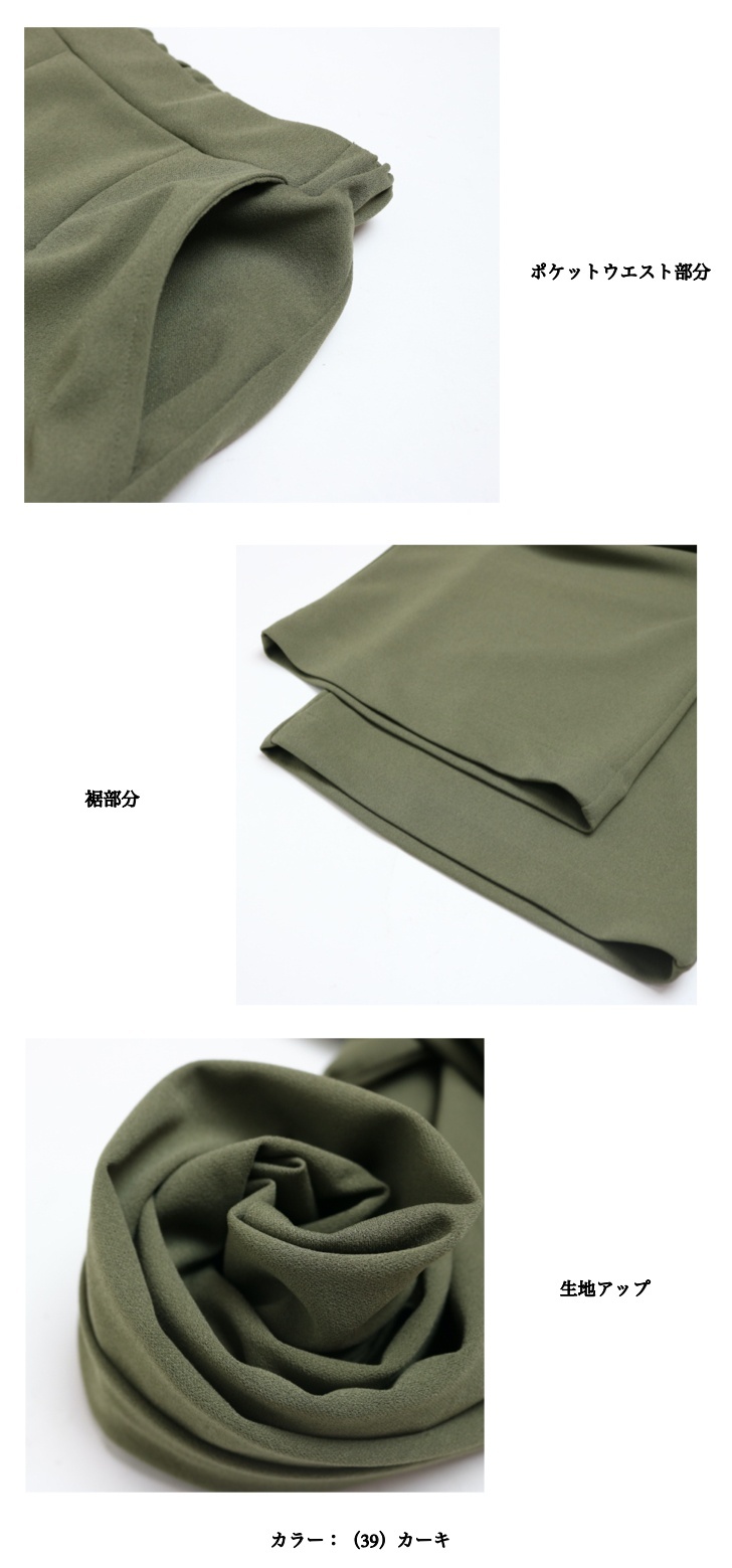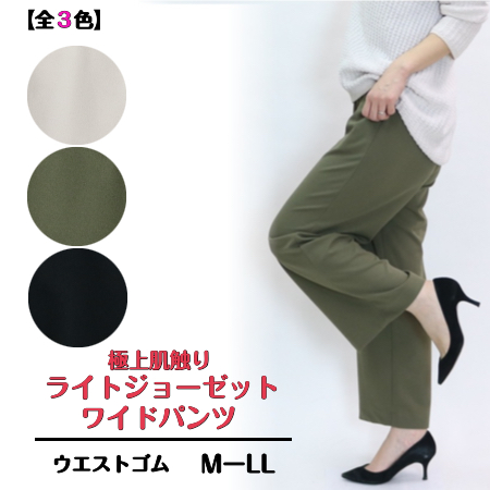 H-1266 シワ知らずの快適ストレッチパンツ! ライトジョーゼットワイドパンツ M-LL