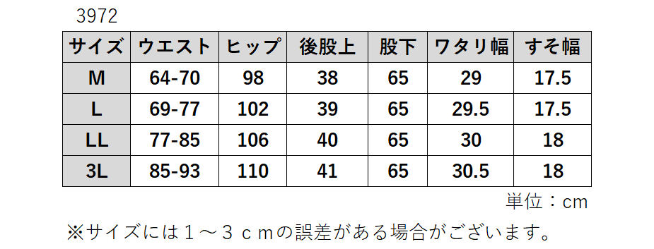 | サイズ | M L LL 3L |