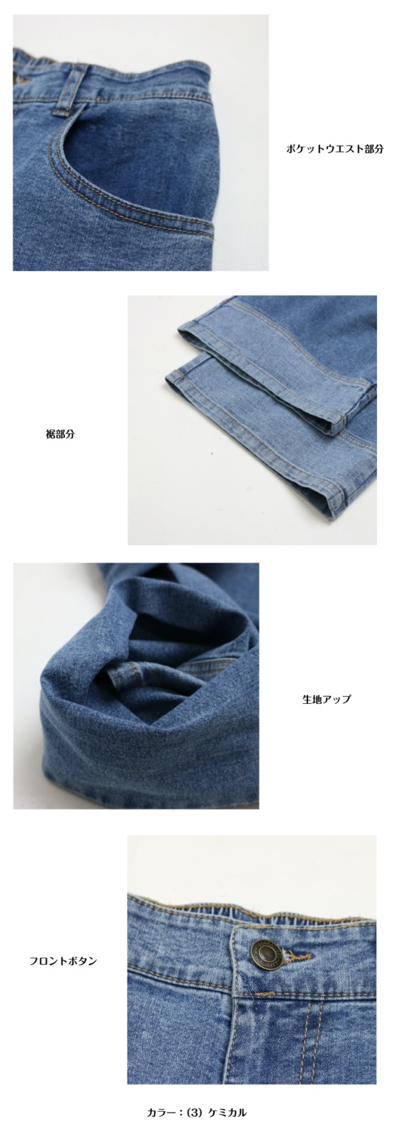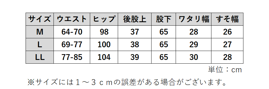 | デザイン | ウエスト前ファスナー 前後ポケット付き 股下65cm |