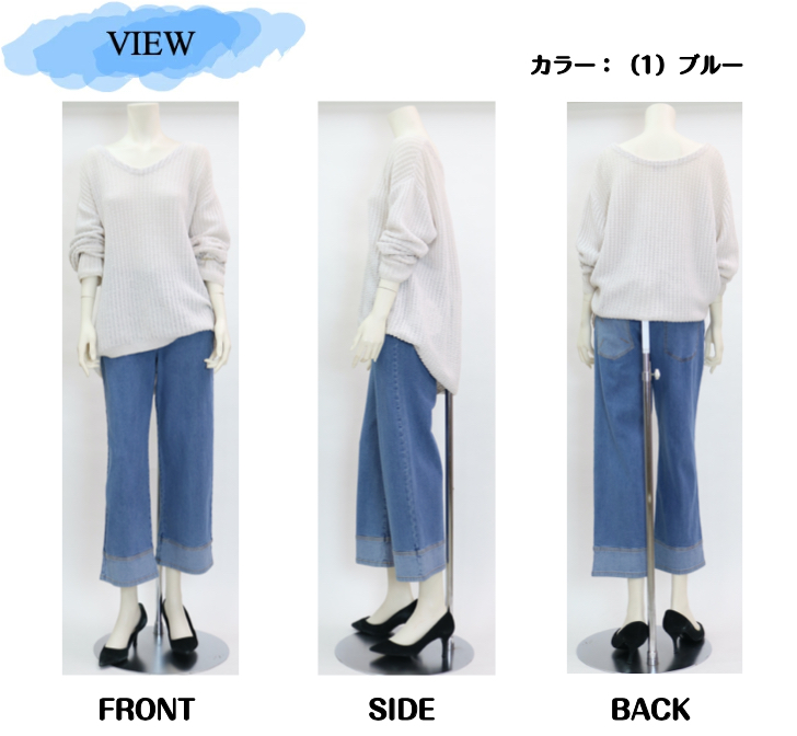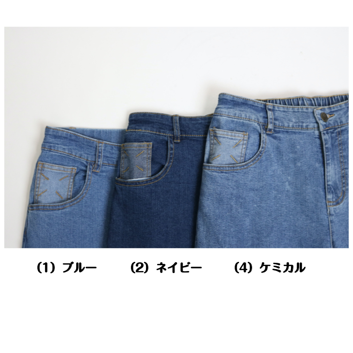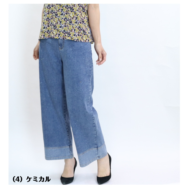 0003 伸びて楽、きれい見えデニム! 前ファスナー ストレッチデニムワイドパンツ M-LL