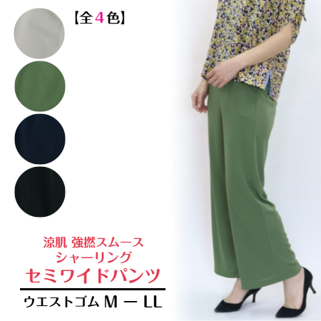 5260 涼感きれいめ美パンツ! 涼肌強撚スムース バックシャーリングセミワイドパンツ M-LL