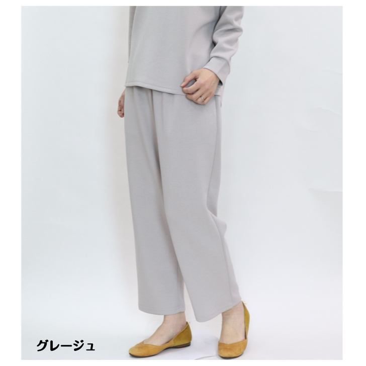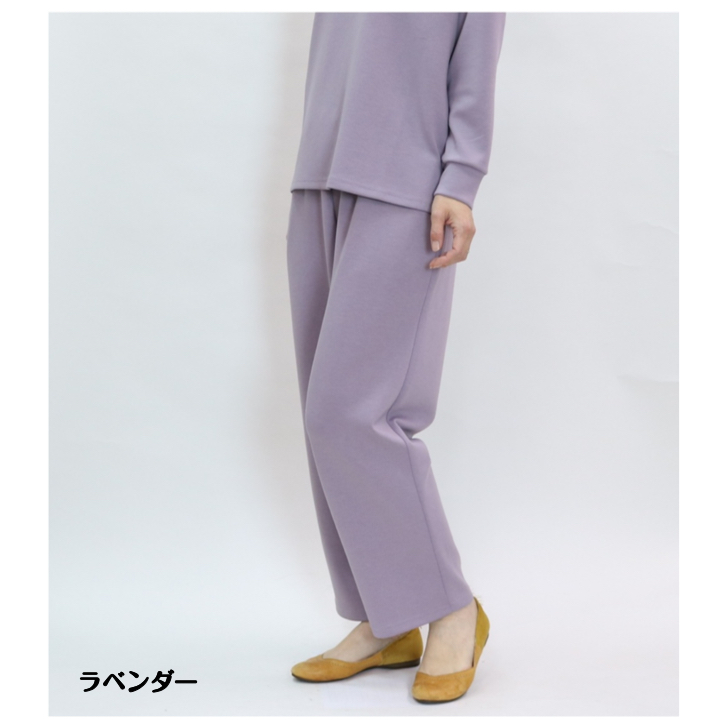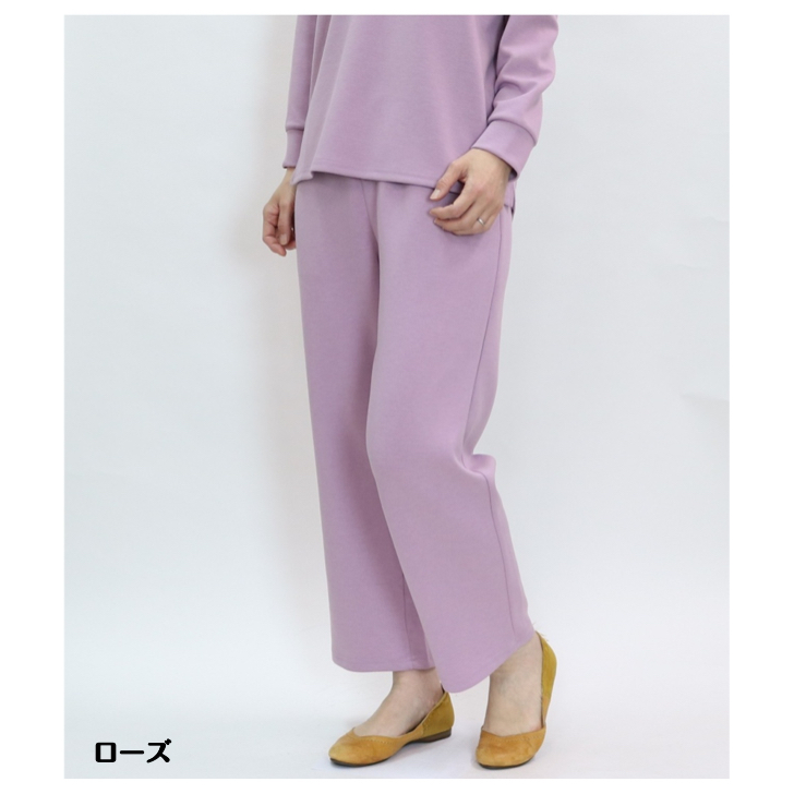 足元がすっきり落ちるストレートシルエット。部屋着でも外出着でもきれい見え。