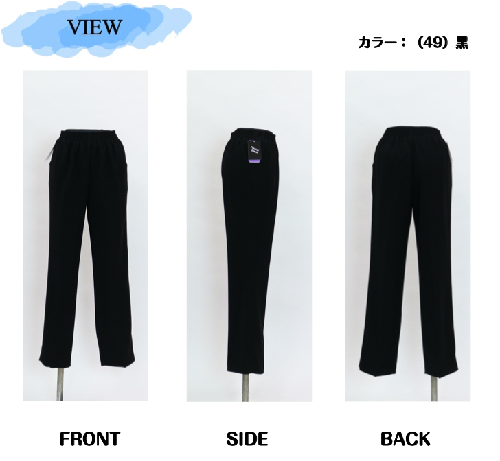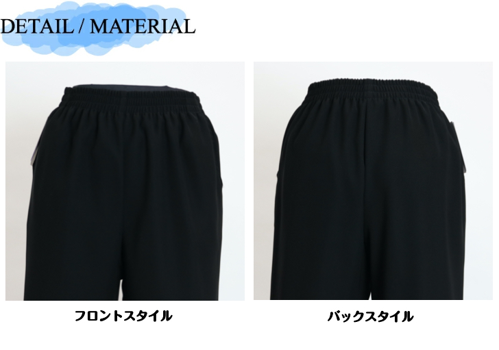 | デザイン | ウエスト総ゴム 前ポケット付き 股下70cm |