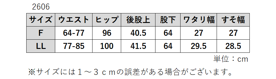| デザイン | ウエスト総ゴム 前側両サイドポケットあり 股下64cm |
