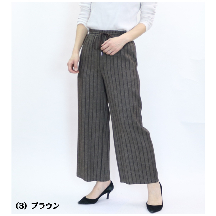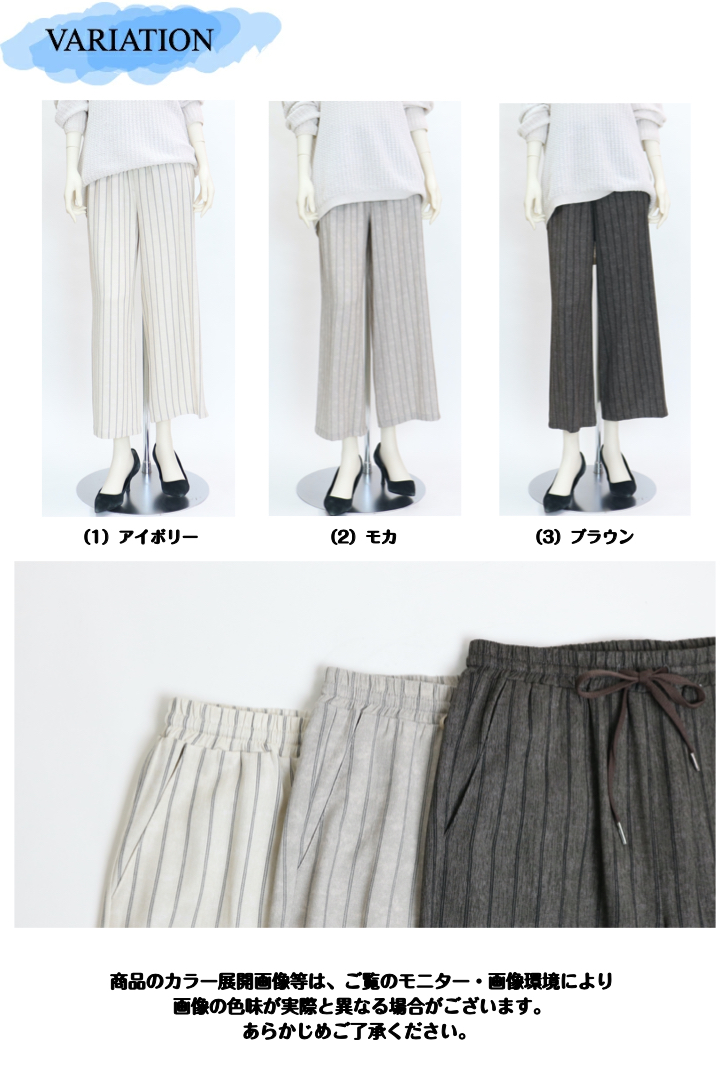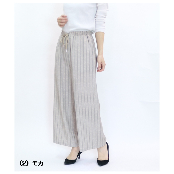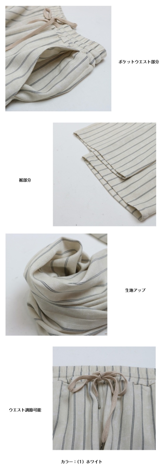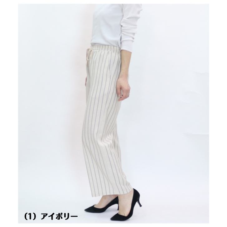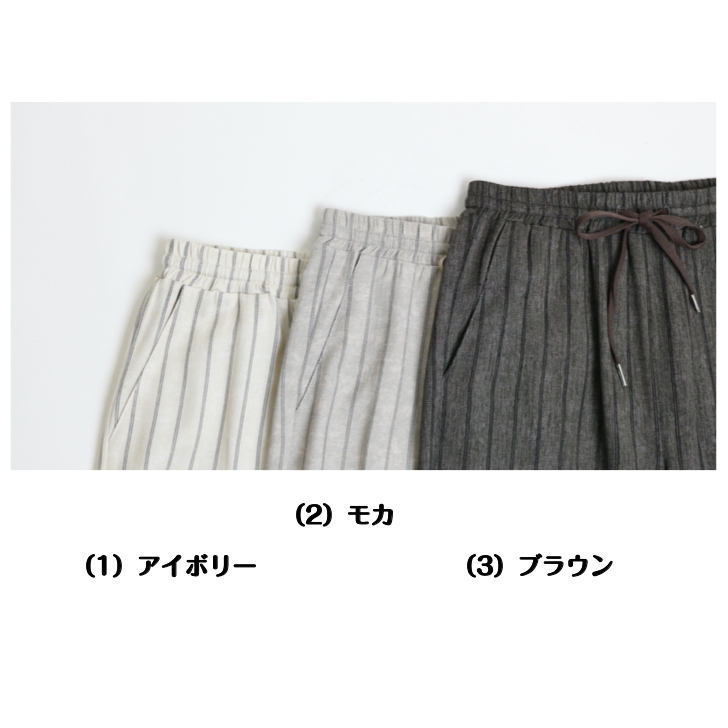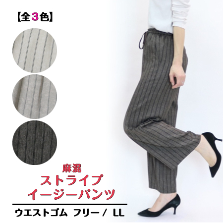 2606 麻混で涼しい夏パンツ! 麻混ストライプイージーパンツ F-LL