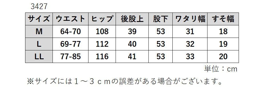 | デザイン | ウエスト総ゴム 前側ポケット付き 股下53cm |