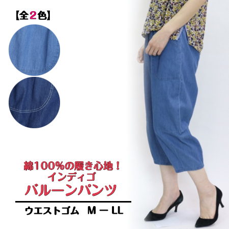 3427 楽ちんデニムの涼しい一本! インディゴバルーンパンツ M-LL