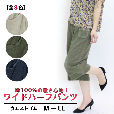3677 軽やかワイドクロップド! ワイドハーフパンツ M-LL
