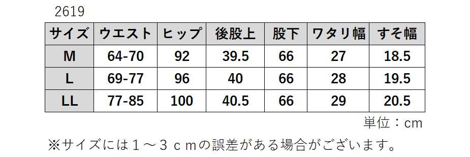 | デザイン | ウエスト総ゴム 前後ポケットあり 股下66cm |
