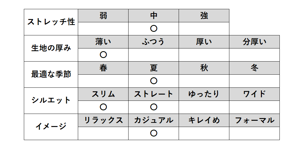| 素材 | 綿42% ナイロン36% ポリウレタン22% |