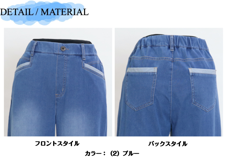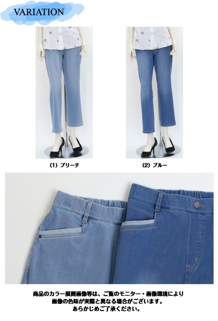 2619 ミセスのための冷感デニムパンツ! 冷感ニット デニムストレートパンツ M-LL