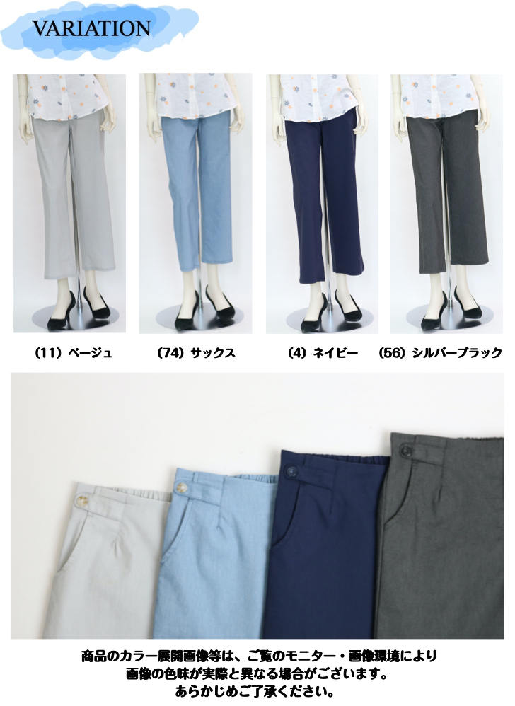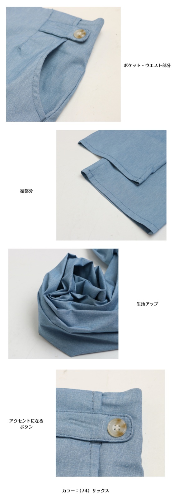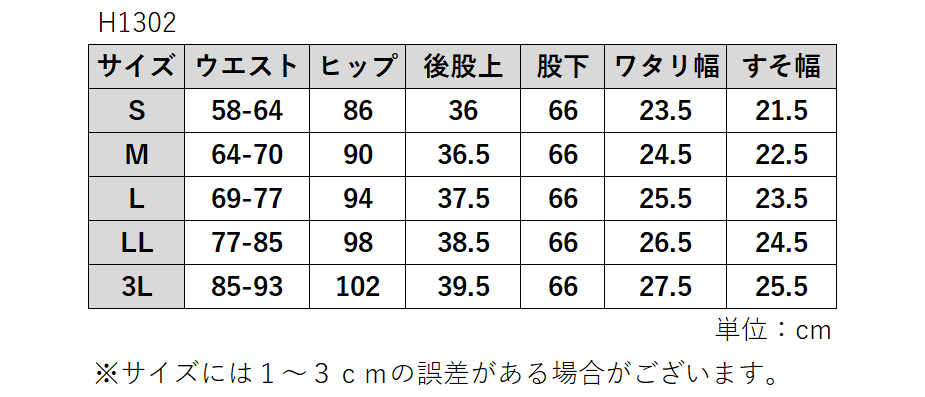 | デザイン | ウエスト後ろゴム 前後ポケット付き 股下66cm |